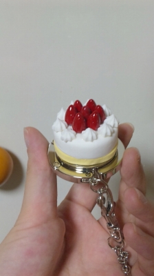 ヤフオクで、バッグハンガーを買いました。私の大好きな、いちごのショートケーキの、スウィーツデコの。