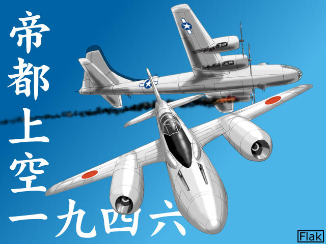 元は、しゃるさんのHPの掲示板に墨東301さんが書き込んだ「橘花」の描写に触発されたものです。ま、元ネタとはだいぶ違ってしまったようですが(笑)。さすがに大戦中に橘花を飛ばすことには私も抵抗があったため、意図的に「1946年」と言うことにしています。というか佐藤大輔先生の「目標、砲戦距離四万」の中に出てくる、帝都防空隊のイメージの方が強いかも知れません。