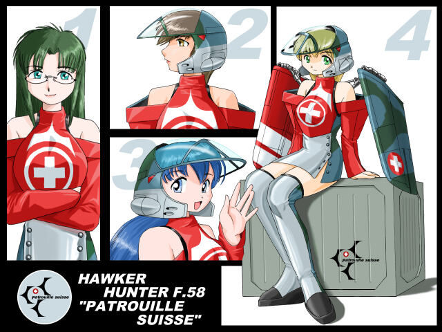 イギリスが誇る亜音速戦闘機、ホーカー・ハンターから、スイス空軍仕様のF.58をスペシャルチョイス。かつて世界で一番美しい戦闘機と呼ばれた勇姿を再現しようと試みるも、私ごときの画才では再現など不可能。ならば女の子でごにょごにょ。