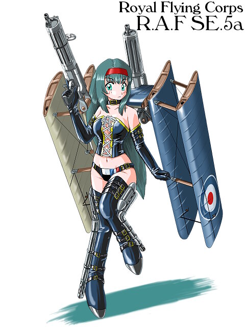 擬人化にあたり、特徴である機首上面と翼上の2丁機銃しか考えていなかったので、コスチュームに苦心しました。で、コクピット横のキャンパスと編ヒモを見て、ボンテージを妄想したわけでして・・・(笑)