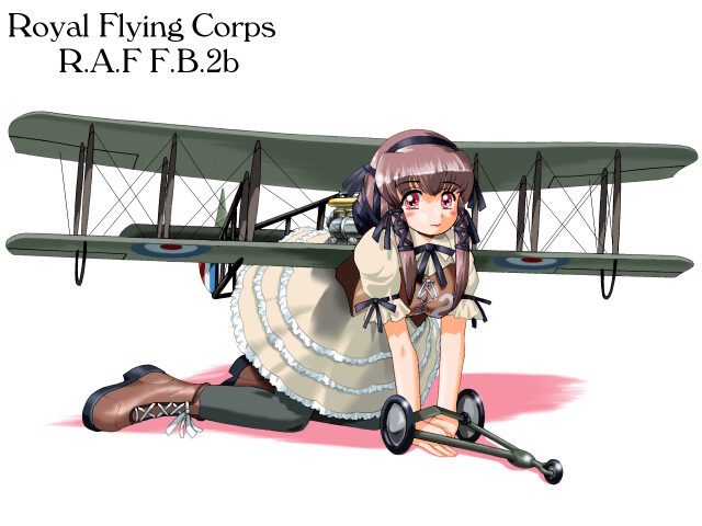 そんなわけで、R.A.F(Royal Aircraft Factory = 王立航空廠)のF.E.2bさんの登場です。D.H.2さんと同時期の娘さんですが、D.H.2さんほど華々しい活躍がなかったので、ちょっと地味めにアレンジ。服の色もフリルも控えめにしております(笑)
