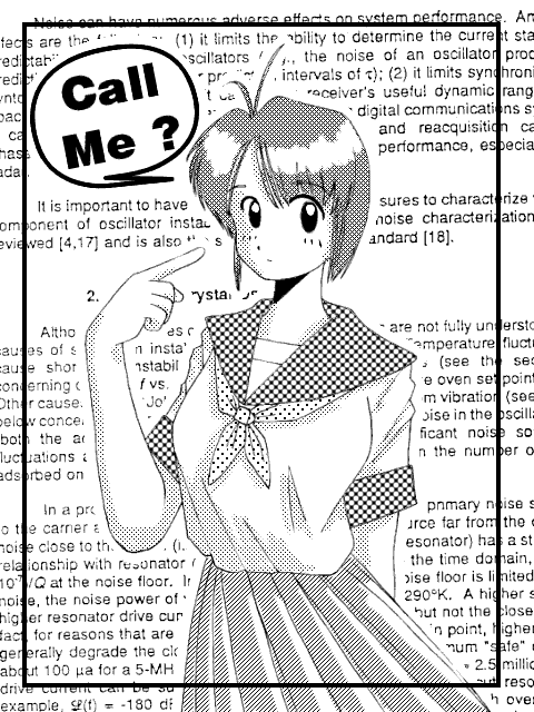 この絵はちょっとした実験品です。「白黒トーンな絵でも作ってみよう」と(仕事中に)思い立ったので、速攻描いてみた絵なんです。描いている時間より、トーンテクスチャ(ファンファーレ・フォトグラファー用のテクスチャ)を作っている時間の方が長かったような・・・(笑)。バックの英字は、(読んでもいない)論文を取り込んだものです。