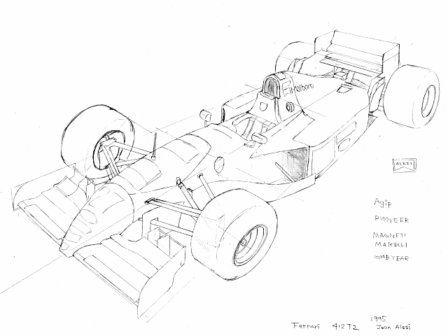 412T2は、当時のチャンピオンマシン、ミハエル・シューマッハーの駆るB195(ベネトン・フォード)や、デイモン・ヒルの駆るFW17(ウィリアムズ・ルノー)よりも明らかに劣るパッケージでしたが、第6戦カナダグランプリにて、ジャン・アレジにF1初の(そして最後の)優勝をもたらしたことで、歴史に残るマシンとなりました。