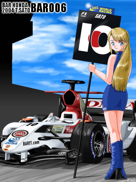 なお女の子が持っているプラカードですが、最上部にはグランプリ主催企業のロゴが入ります。現在ブリティッシュ・アメリカン・タバコが主催しているグランプリはありませんので、このカードは実在しません。まあ、BARのマシンの前でマルボロだと、ちょっとまずいかなと、それだけです(笑)。