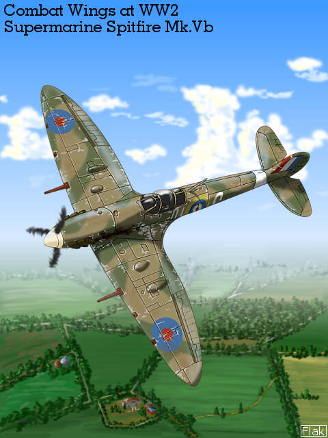 MkVは、エンジンをマーリン45型(1470馬力)に換装したタイプ(他にも46型や50型、56型等も使用)で、最大速度598km/hの高速と7.7mm機銃8丁、または20mm機関砲×2丁7.7mm機銃×4丁(20mm機関砲4丁も可能)の重武装が特徴の機体でした。この型は1941年1月より部隊配備が始まり、1943年9月の生産終了までに6479機の生産が行われ、スピットファイアの全型の中で、最大の生産数を記録しています。なおb型は20mm機関砲×2丁7.7mm機銃4丁の武装を指します。