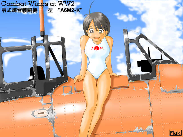 何故零練かは全くの謎です。元は零水偵(零式水上偵察機)を考えていたのですが、フロートと水の表現が上手くできるか不安だったモノで、結局楽な方に転んでしまいました。初めてのディテールアップな絵でしたので、かなり苦労しました。結局リベットと塗装の剥げを描き込んで、ようやく画面にしまりが出た次第です。それでも上手くいっているとは言い難いような・・・(苦笑)。
