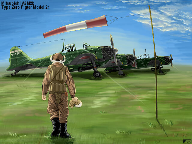 滑走路脇には、使い古された零戦と、同じく使い古された零練が並んでいる