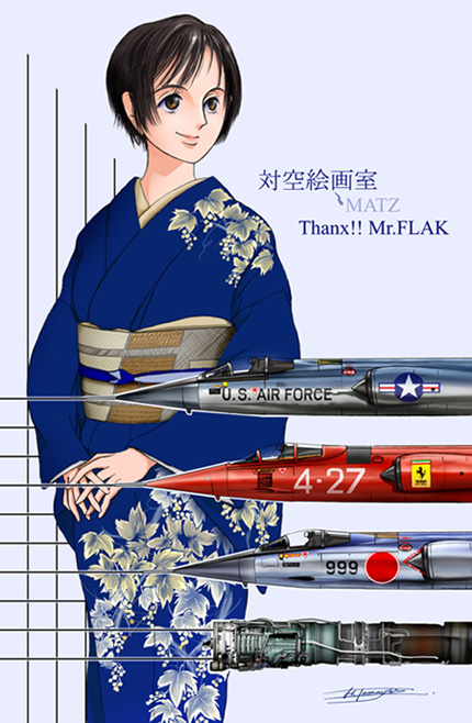 絵は真魚さんがF-14に次いで好きな戦闘機である、ロッキード(現ロッキード・マーチン)F-104スターファイターと、着物姿のお姉さまです。