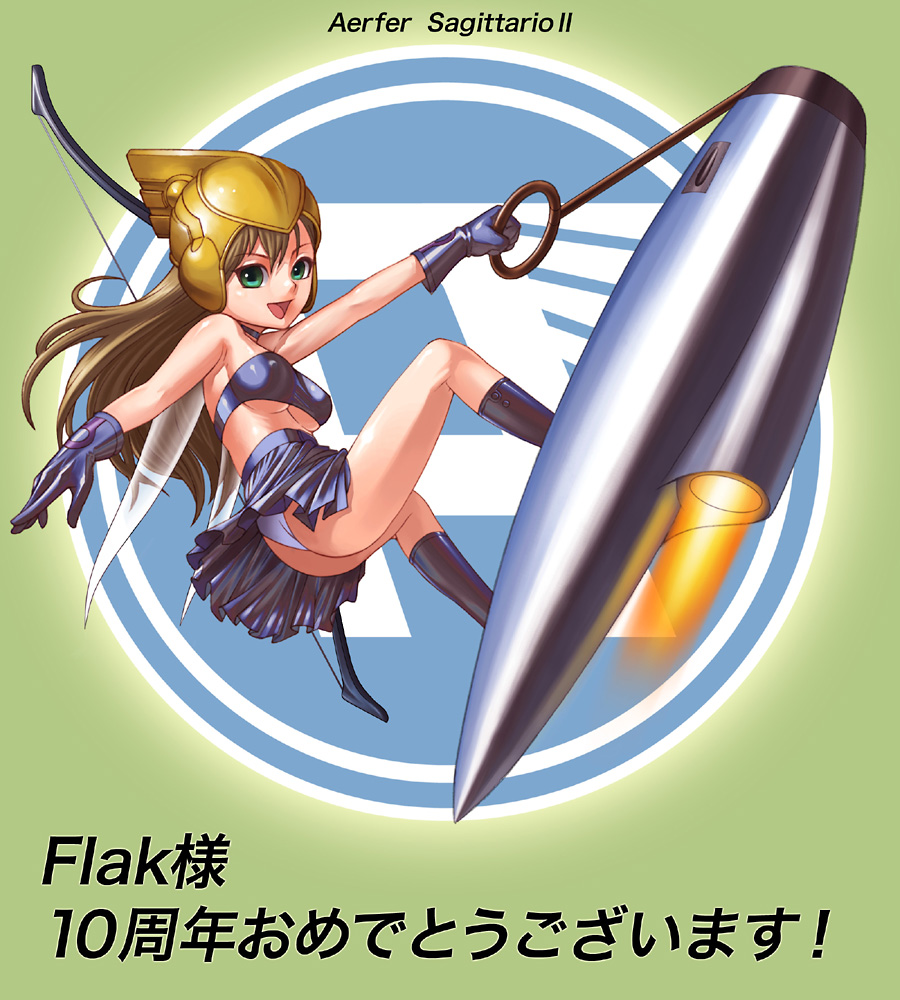 特徴的な機首に乗った射手の女の子。古代ローマ兵っぽいヘルムに、チューブトップのブラ(しかも下乳)が眩しいです。しかもおぱんつ。ご馳走様です(笑)