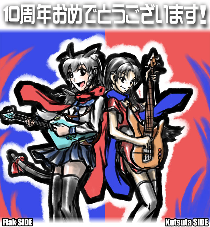「ミラノ&フェニ」 「絵ToMovie」を運営なさっているKutsutaさんより、弊サイト10周年を記念していただきました。 イラストはKutsutaさんのオリジナルマンガ「PRIDE」からミラノさん、それからウチのフェニを合わせて頂きました。筆でなぞったような太い輪郭線が面白いですね。ありがとうございます。